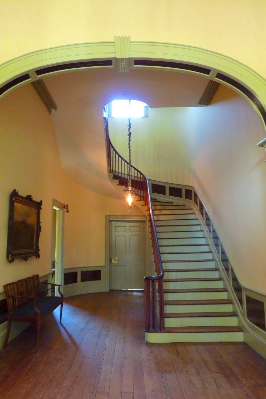 Zapewne miałabym nieco inne odczucia, gdybym mogła poruszać się po nim samochodem, zobaczyć nieco więcej niż Downtown... - myślałam. Okazało się jednak, że i w centrum można zobaczyć coś ciekawego. Poznana na konferencji koleżanka z Belgii planowała zwiedzić historyczne domy przy Blanding Street. Przyłączyłam się do niej i spędziłyśmy pouczające popołudnie, dowiadując się kilku faktów z historii miasta i, przede wszystkim, zwiedzając piękne wnętrza. Zanim przewodniczka powiedziała, że nie można robić zdjęć we wnętrzach (ponieważ, uwaga - muzeum nie ma praw autorskich do wszystkich znajdujących się w domach przedmiotów!), udało mi się sfotografować klatkę schodową i fragment salonu. Nie zważając na prawa autorskie do przedmiotów - oto i historyczne wnętrza: