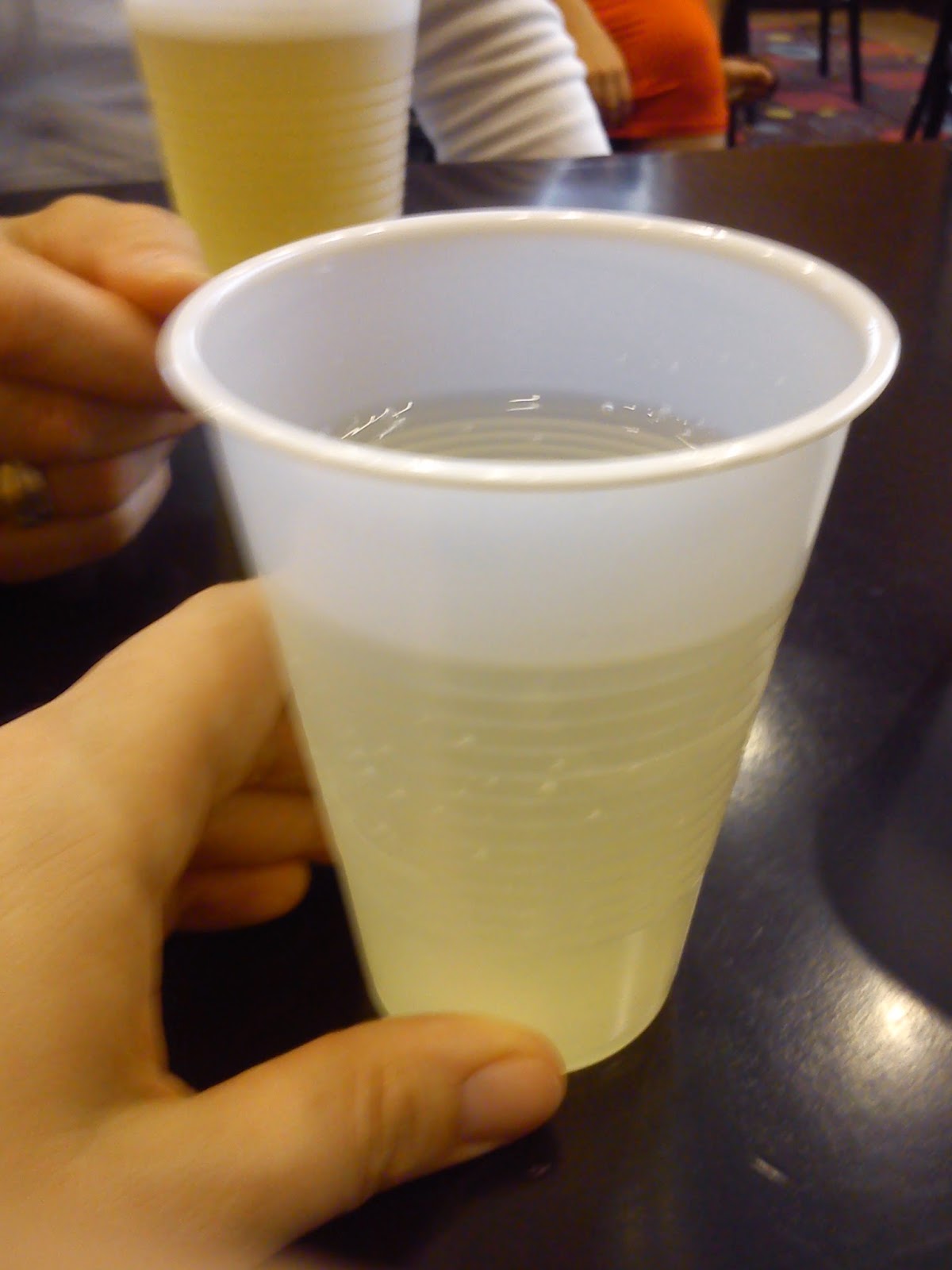 Na koniec zaś takie małe zdziwienie, które wprawiło mnie i koleżanki z konferencji prawie w studencki nastrój. W naszym hotelu od poniedziałku do czwartku w określonych godzinach popołudniowych serwowano dla gości przekąski i piwo lub wino (dwa kieliszki na głowę, żeby nie było!). Wino było dobre, ale spójrzcie na kieliszki! 😀