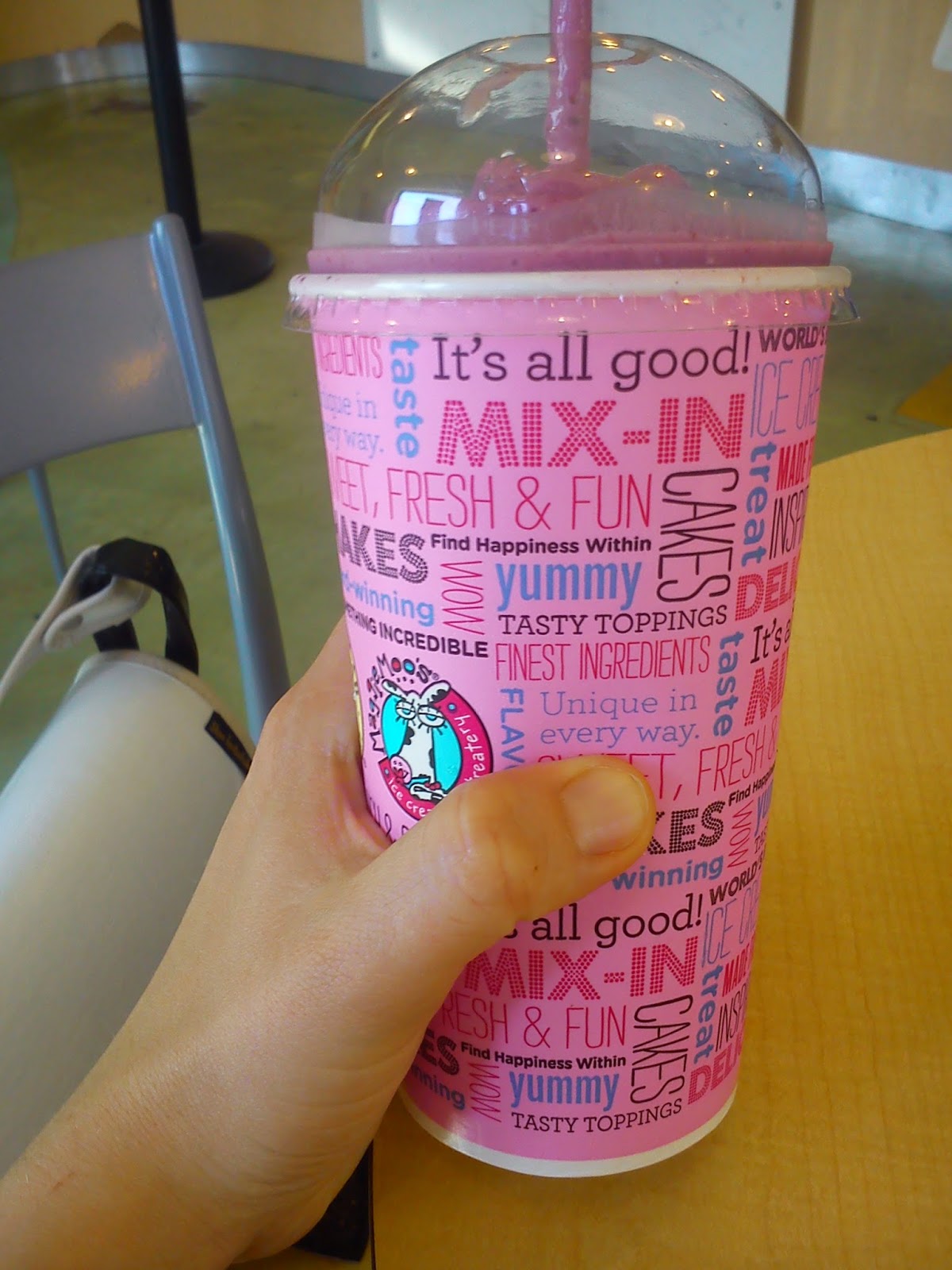 Pierwsza kwestia to ich wielkość. Jak piszą, że napój jest duży, to rzeczywiście jest DUŻY. Litrowy smoothie zakupiony na lotnisku był pierwszym dowodem na to, że facet z Super Size Me nie kłamał. W knajpce w Columbii nie było różnych rozmiarów napojów; mój, tak na oko, był półlitrowy. A może nawet ciut większy... Oba smoothies były bardzo słodkie.