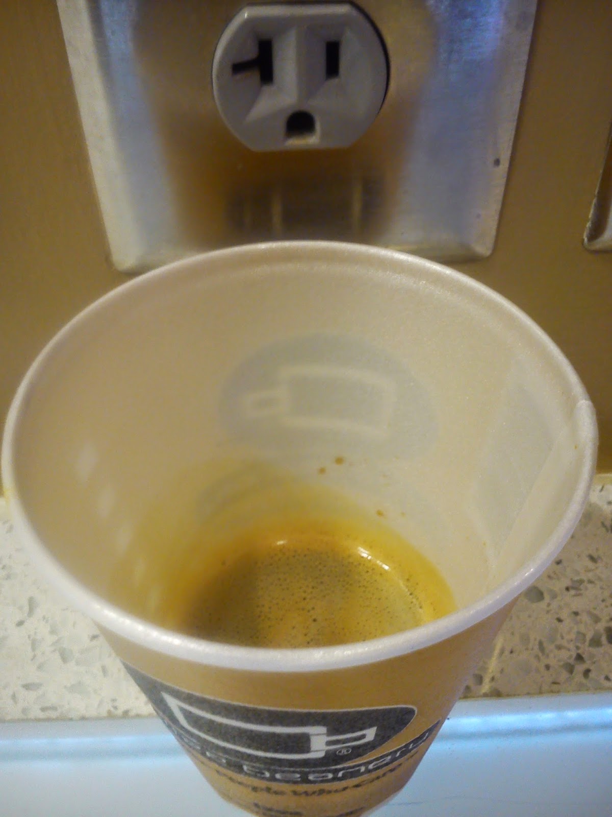 Kawa na lotnisku... Espresso, na widok którego każdy porządny Włoch wyciągnąłby nogi... A jeśli nawet nie na widok, to spróbowawszy. Nie jestem kawoszem, ale piłam kawę w Rzymie. Smakowała inaczej. O, patrzcie, nawet gniazdko się zdziwiło. (Te amerykańskie gniazdka są taaaakie śmieszne :D.)